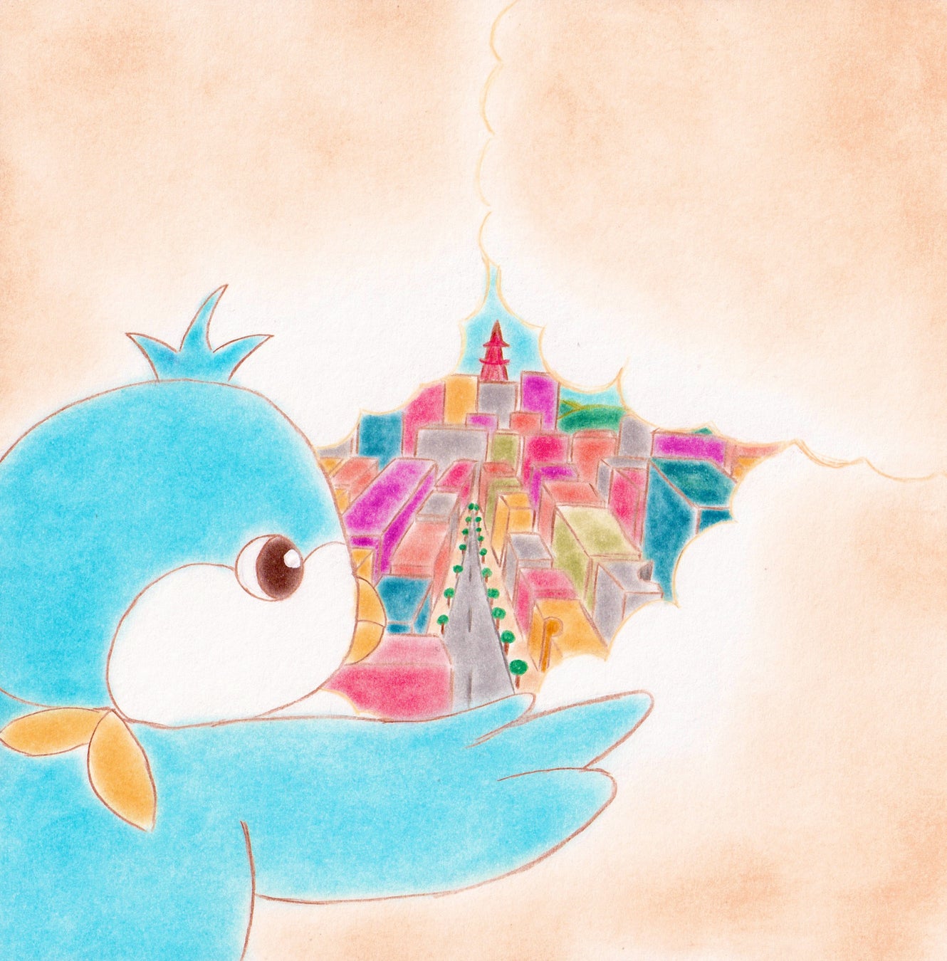 ストーリー:しずくじまに住んでいる「モコロ」は、ある日、人間界に遊びにきました。公園の上を飛んでいると、「ありがとう」と「ごめんね」を大切にする親子の会話が聞こえてきました。モコロの住むしずくじまでは、「ありがとう」と「ごめんなさい」は“まほうのことば”と呼ばれ、とても大切にされています。「人間の世界でも大切にしているんだ」そう気づいたモコロの心は、あたたかくなりました。その後も、街の中でたくさんの人たちが言葉を大切にしている場面に出会い、言葉の大切さを再認識したモコロは、元気にしずくじまへ帰っていきました。