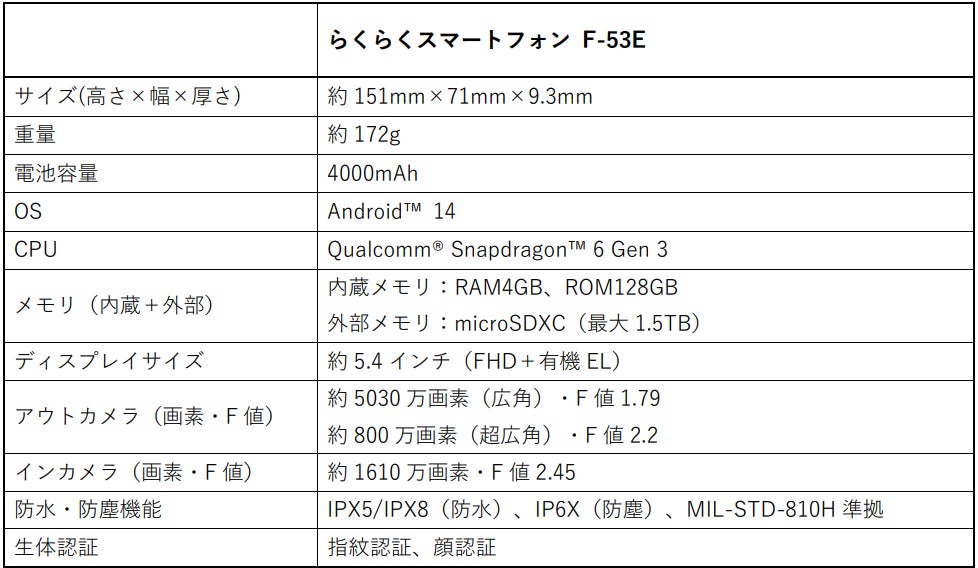・「らくらくスマートフォン F-53E」製品ページ:https://www.fcnt.com/product/rakuraku/f-53e/