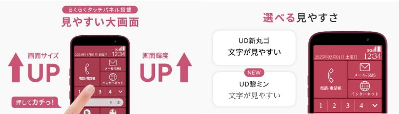 ※1 2024年10月1日時点、FCNT調べ。らくらくスマートフォン内での比較。らくらくタッチパネル搭載ディスプレイサイズ、CPU性能において最高。