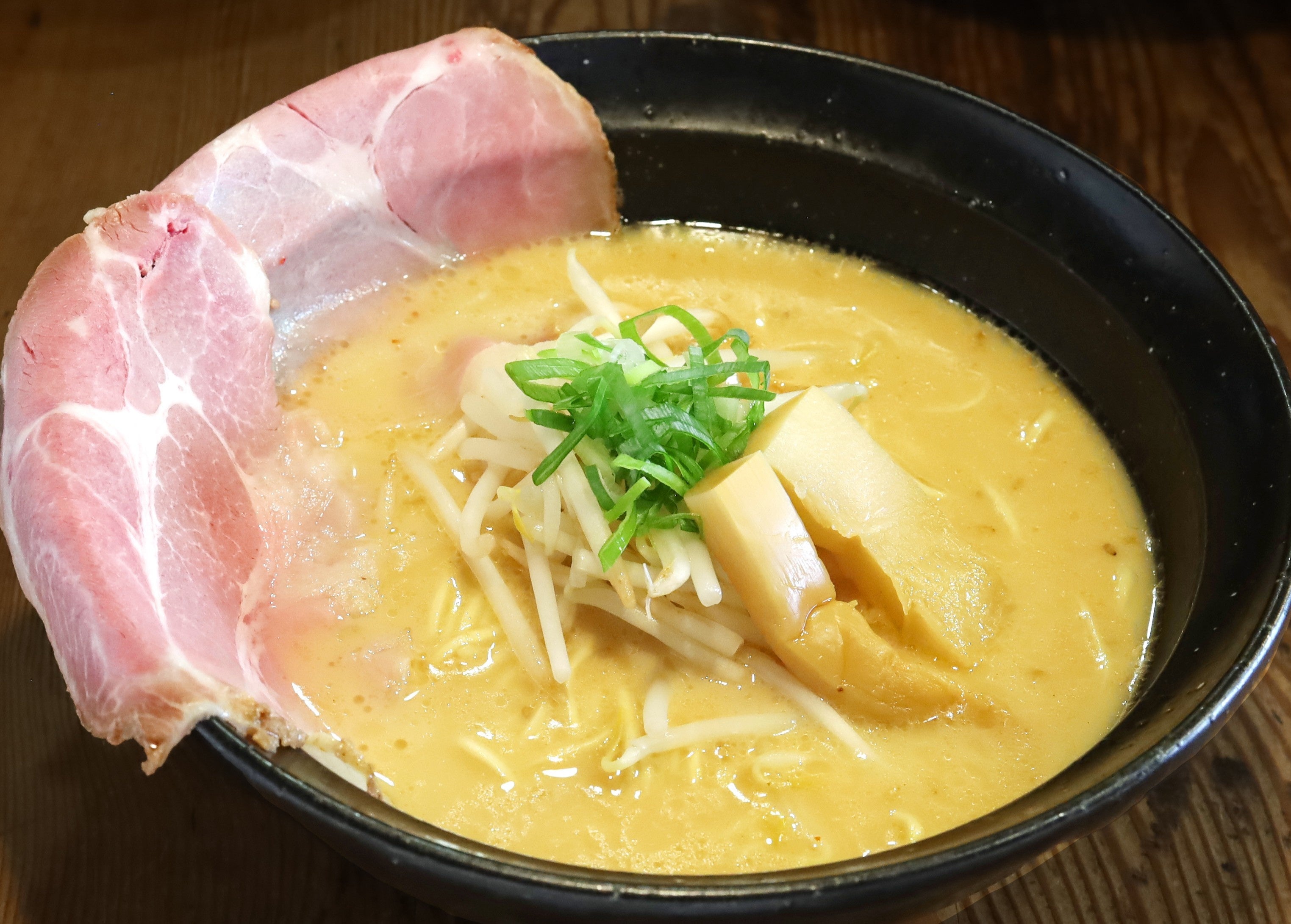門外不出のスープは三田店で15年間親しまれてきた味に更に改良を重ねた、白濁の濃厚豚骨スープです。香ばしい味わいの特製香味油を加え、絶妙で奥深い風味の感じられる一杯です!