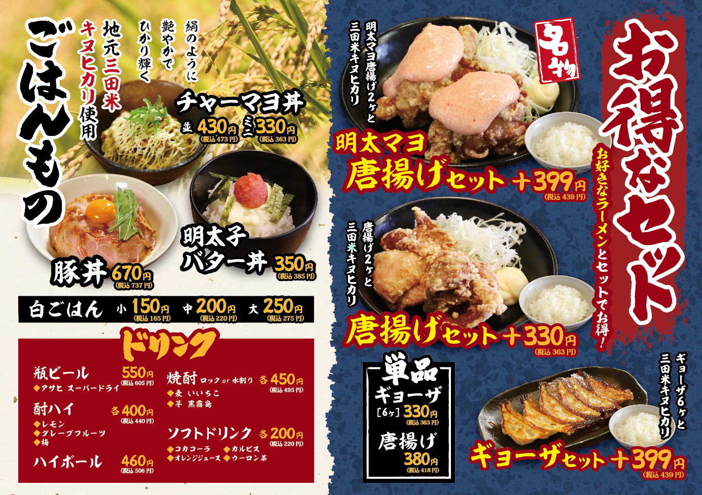 どれも素材にこだわり、一杯ずつ丁寧に作り上げています。お得なセットメニューやトッピングと共にぜひお楽しみください!