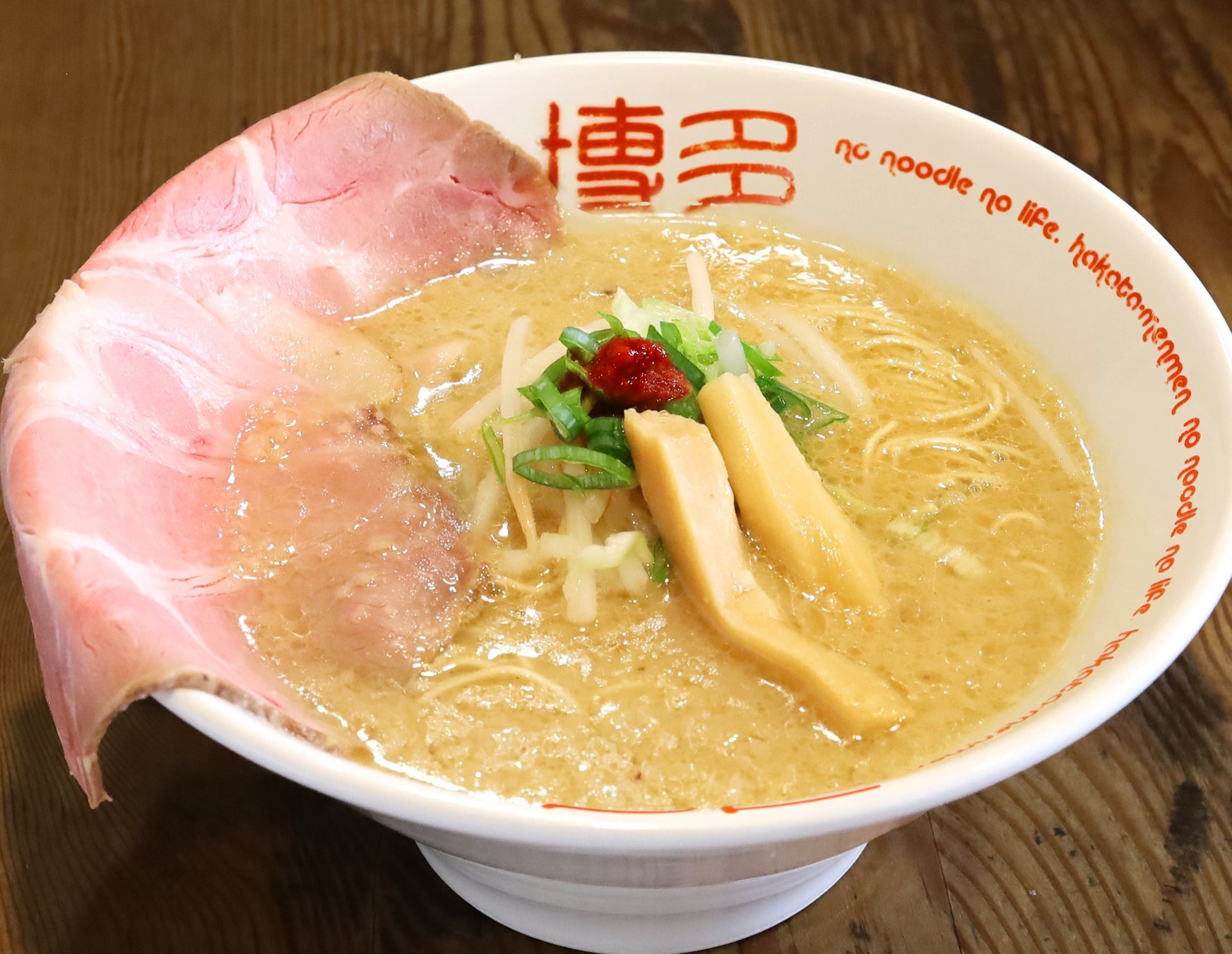 屋台の博多ラーメンの味わいを自慢のレアチャーシューと一緒に味わえる「博多豚骨 響」。