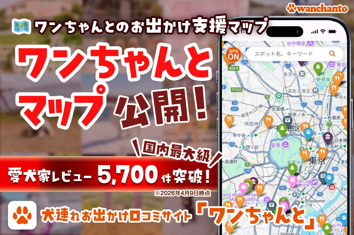株式会社サイドバイ(本社:神奈川県川崎市、代表取締役:片山哲)が運営する、犬連れお出かけ先口コミサイト「ワンちゃんと(wanchanto.info)」は2026年4月9日に、愛犬家向けお出かけ先検索マップ「ワンちゃんとマップ」をリリースしました。