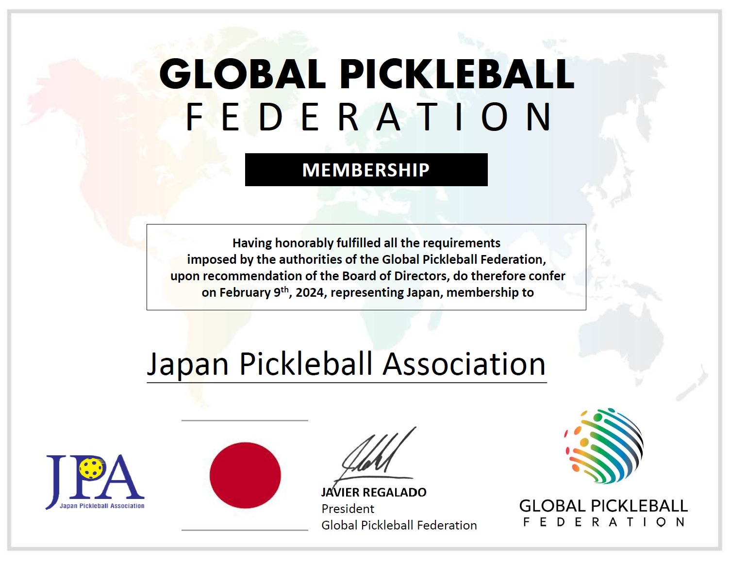なお、日本ピックルボール協会(JPA)は、GPFにおけるアジア大陸組織“Asia Pickleball Association(APA)”の理事国として選出されており、アジア地域の競技発展において重要な役割も担っています。