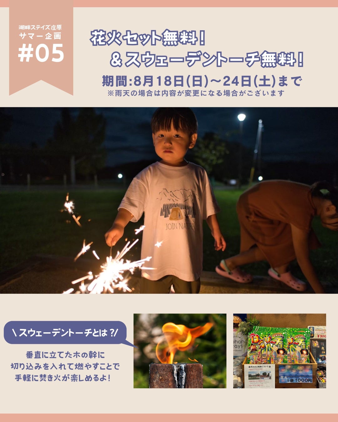 ■第4弾 8月18日(日)~24日(土)【花火セット無料&スウェーデントーチ無料!】