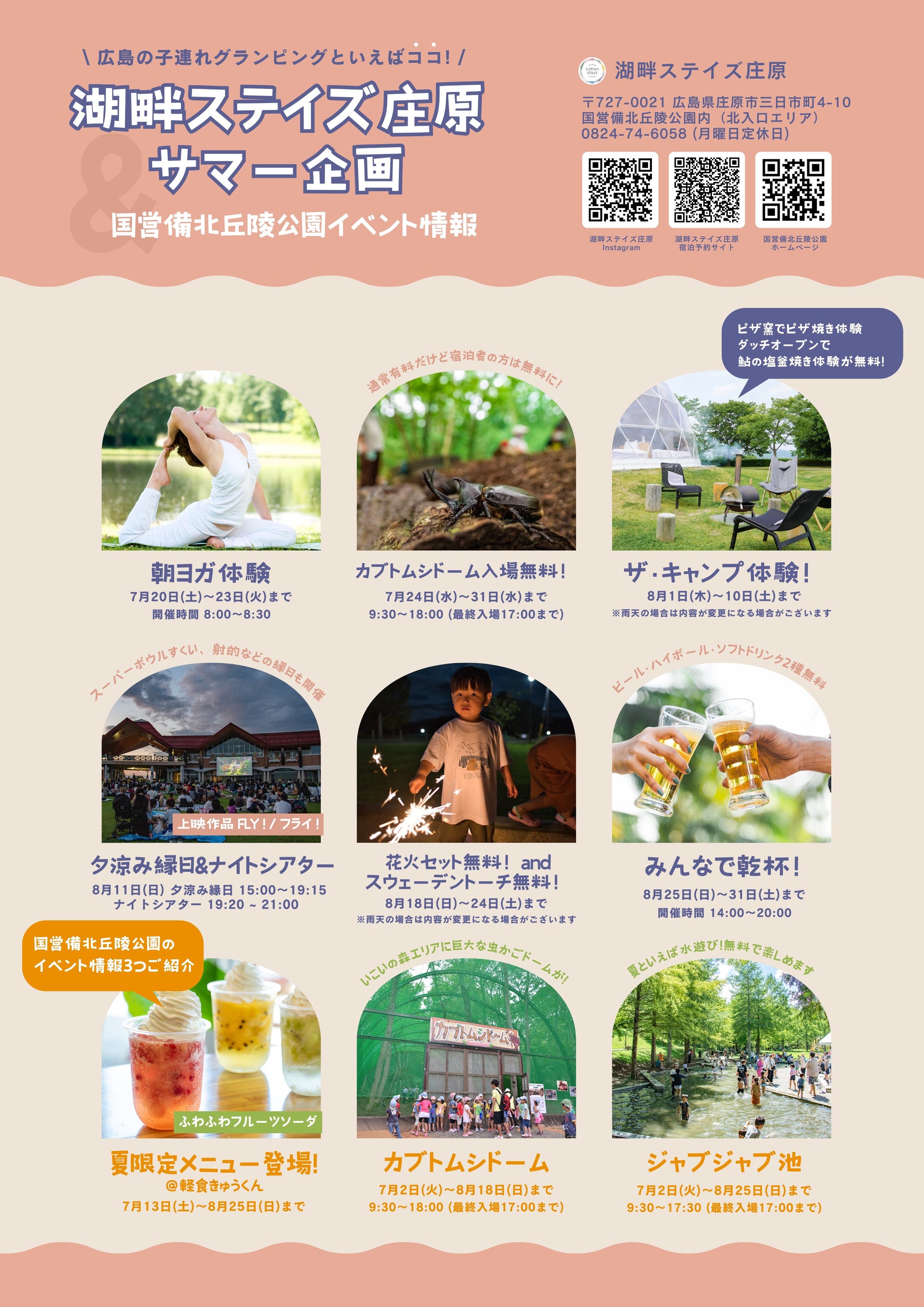 サマー新企画で夏休みの思い出づくりを応援します 国営備北丘陵公園「湖畔ステイズ庄原」
