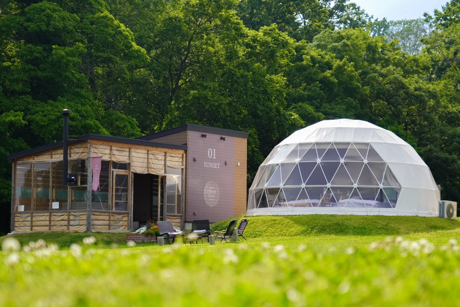 2022年3月オープン。株式会社古街計画と広島県庄原市に位置する国営備北丘陵公園を管理運営するグリーンウインズ共同体(広島県庄原市、代表取締役 奥井智裕)と共に運営。国営備北丘陵公園内でも最も景観の美しい国兼池に面した湖畔エリアを利用して、全7棟の大型ドームテントを配置、国営公園内の行き届いた整備環境の中で、クリーンな自然環境を楽しめる施設です。各棟にはホテルクラスのしつらえを施し、個別のシャワー、トイレ、テラス、バーベキュールームが付属してグループやファミリーで快適にアウトドアステイを楽しめます。