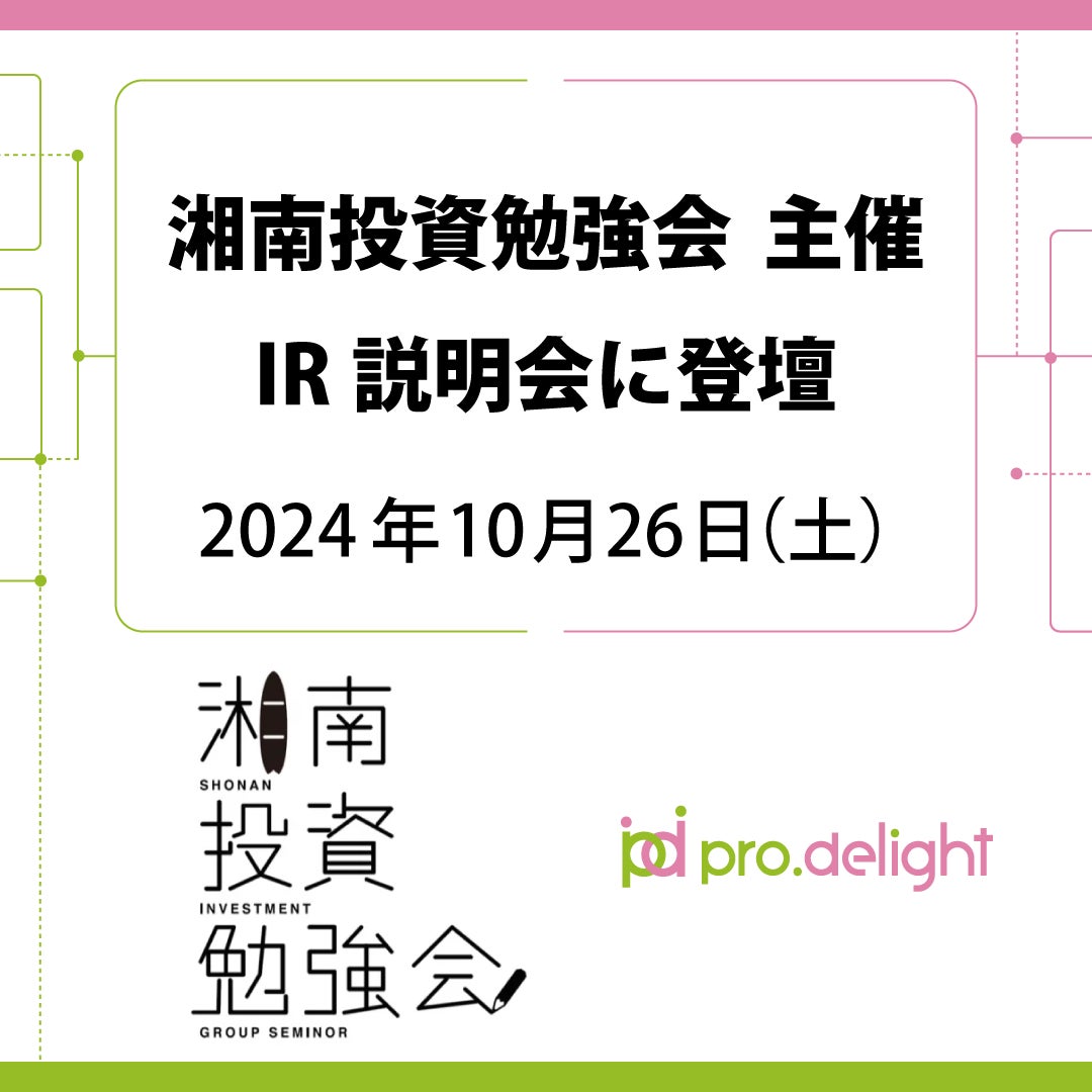 電話のDXを推進する株式会社プロディライト(大阪市中央区:代表取締役社長 小南 秀光、証券コード:5580、以下プロディライト)は2024年10月26日(土)、東京・茅場町にて開催される「湘南投資勉強会 IR説明会」に登壇します。