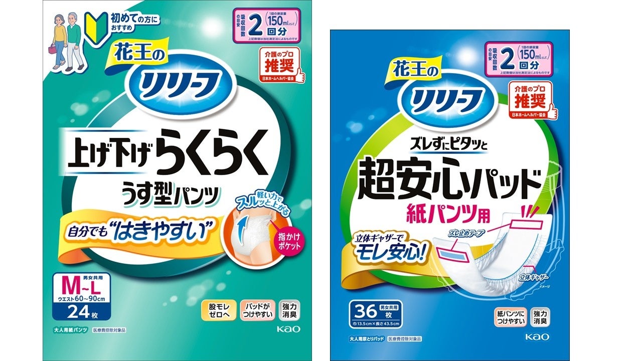 花王の排泄ケアブランド「リリーフ」より、2025年5月3日、大人用紙おむつ「リリーフ 上げ下げらくらくパンツ」を改良新発売。セットでお使いいただける紙パンツ用尿とりパッドも同時に改良新発売いたします。