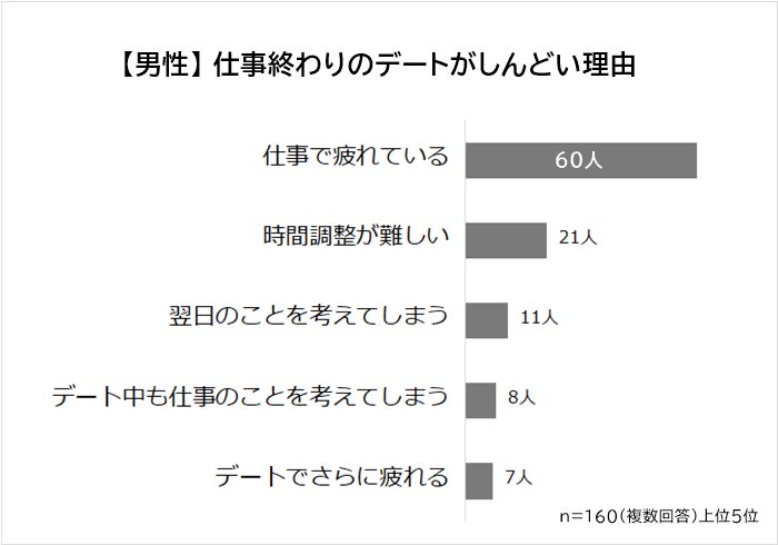 ・男女とも仕事終わりのデートがしんどい理由1位は「仕事で疲れている」