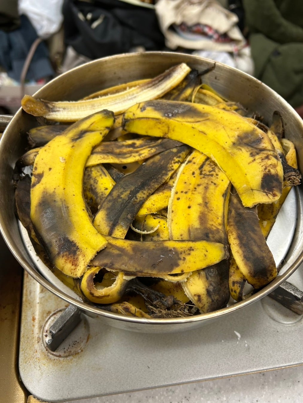 ・バナナの皮で‶バナナ香水?″ 作りワークショップ(①13:00 ②15:00)バナナの皮を熱して、バナナの皮の香りを含んだ水分を抽出。どう活用できるか話してみよう!