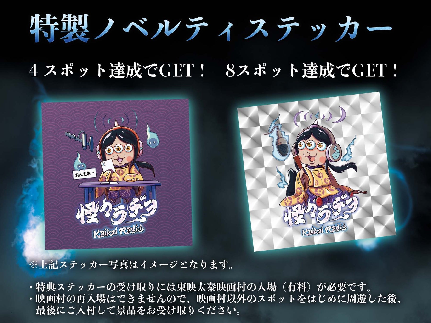 スポットは、嵐電嵐山駅キモノフォレストはじめ、嵐電帷子ノ辻駅や大映通り商店街、最後に「怪々YOKAI祭2025」を開催する東映太秦映画村をゴールとした全8か所。そのうち4か所をめぐるとオリジナルステッカー、全8か所すべて達成した場合は、特製のホログラムステッカーを東映太秦映画村でもれなく手に入れることができます。
