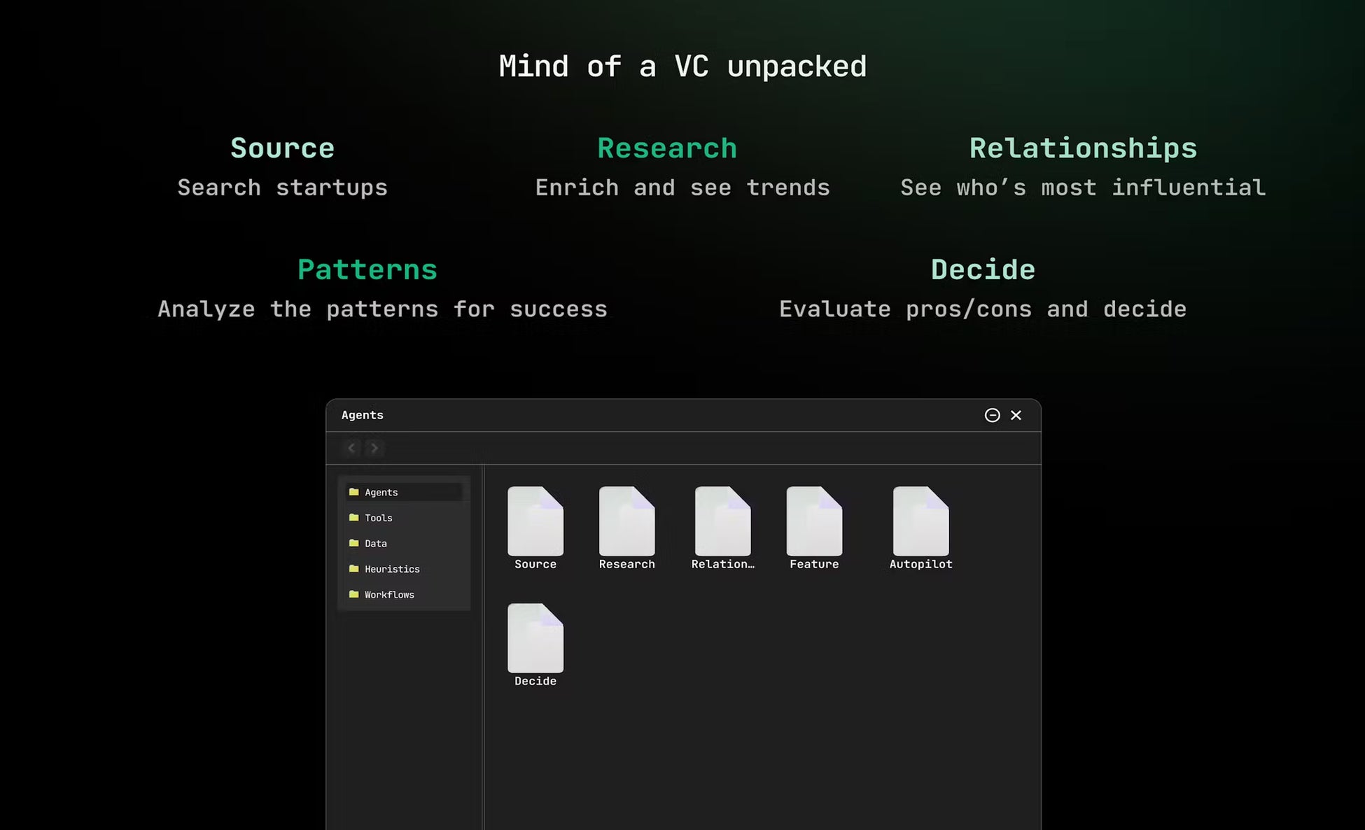 ソーシング、評価、意思決定、モニタリングまでの投資業務をAIによって最適化し、ROI(投資利益率)の最大化を目指します。 -