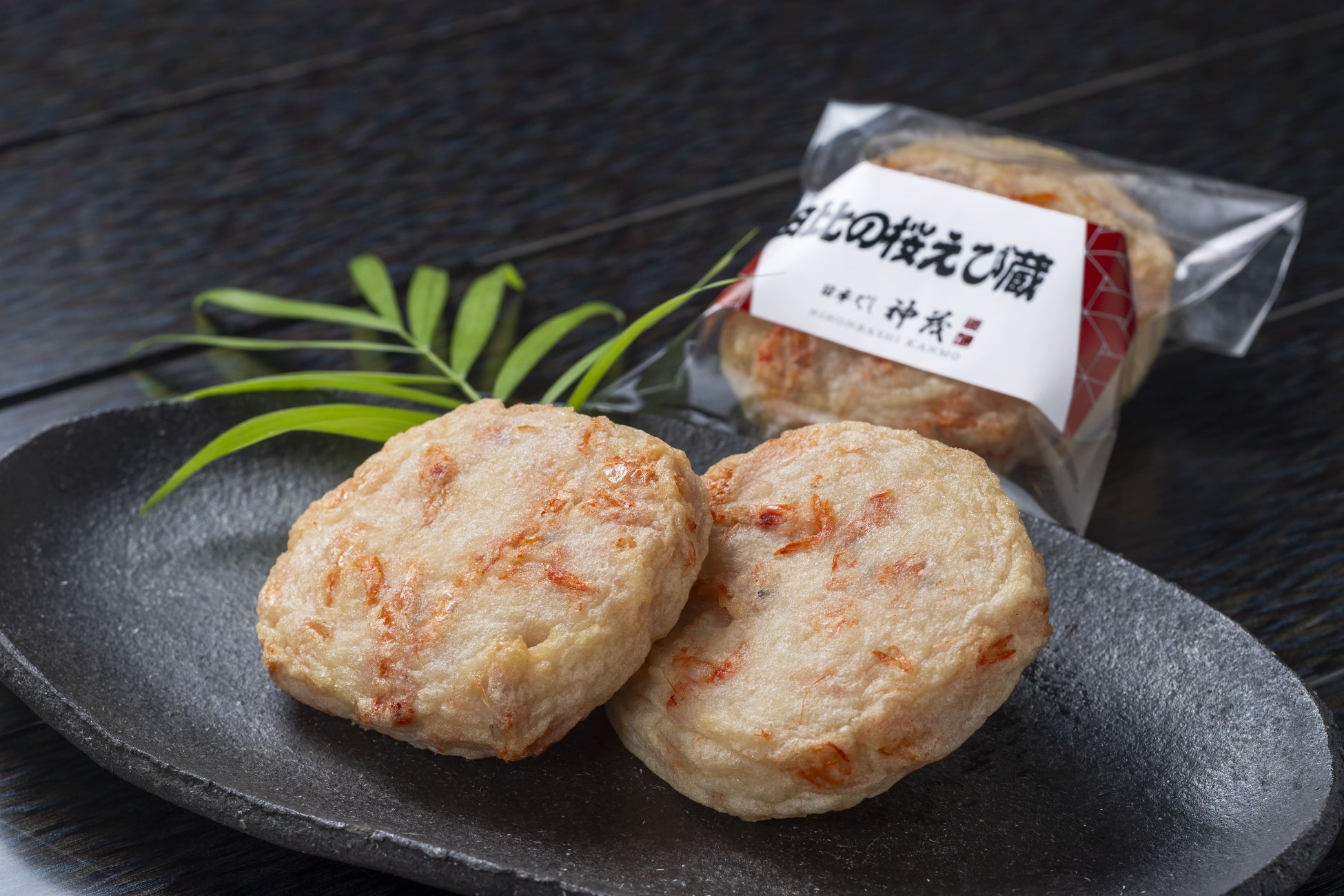春と秋の2回だけ水揚げされる駿河湾特産の稀少な「桜えび」をたっぷり使い、「由比の桜えび蔵」と名付けた神茂自慢のさつま揚をお楽しみください。ご自宅用にはもちろんお土産としてもおすすめです。