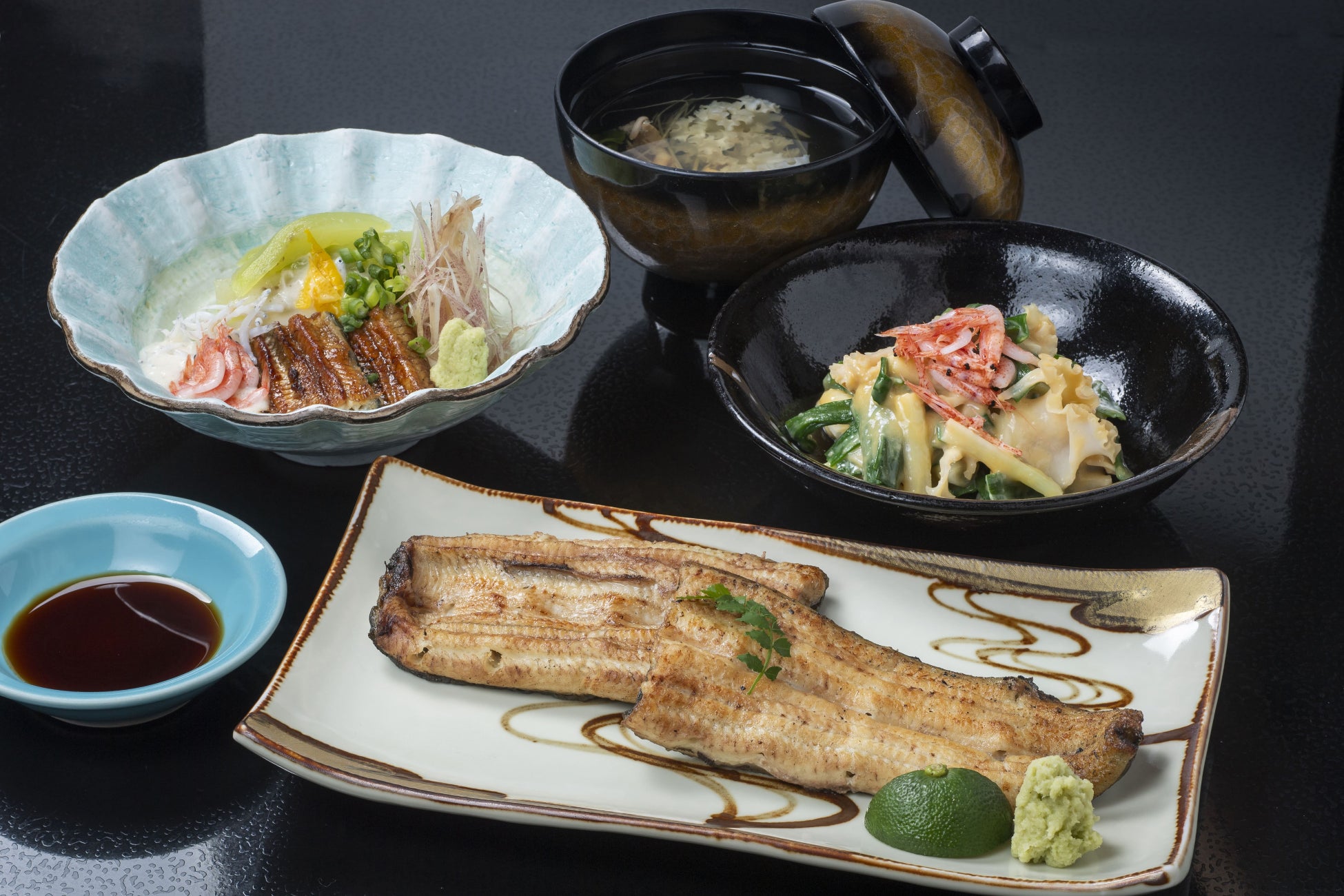 高嶋家自慢の鰻白焼は、静岡市直送の「本わさび」でご堪能ください。「ホホホタケ」は食感を楽しむねぎぬたや肝吸にしています。伝統野菜の「折戸なす」には、牧之原市産の「自然薯」を使い吸いとろ仕立てでお楽しみいただきます。