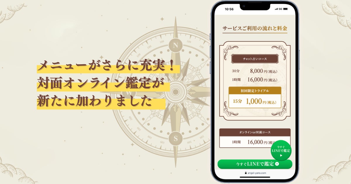 従来のチャット占いに加え、新たにオンラインでの対面鑑定を追加。