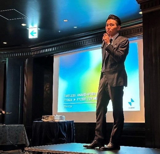 その後、株式会社タイムレス単体で開催された「TIMELESS Award After Party 2024」では、まず代表取締役社長 馬場浩太から2024年の振り返りと今後の展望に関してのスピーチがありました。「2025年の合言葉は沸騰。社員全員で熱く仕事をしていくとともに、それぞれの社員の最適な『沸点』を見つけていこう」といったメッセージがありました。また、それぞれの部長陣が選出した社員への表彰などもあり2024年の締めくくりに相応しい式典となりました。