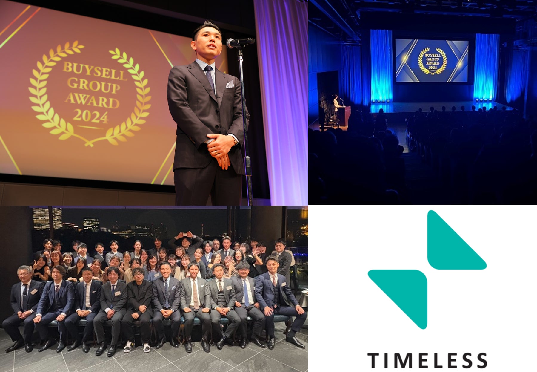 総合リユースサービス(オークション・総合買取サロン・古物商プラットフォーム)を展開する、株式会社タイムレス(本社:東京都港区、代表取締役社長:馬場 浩太)は2024年12月20日(金)、グループ会社全体で丸ビルホールにて開催された「BuySell Group Award 2024」に参加し、弊社単体では「TIMELESS Award After Party 2024」を開催いたしました。