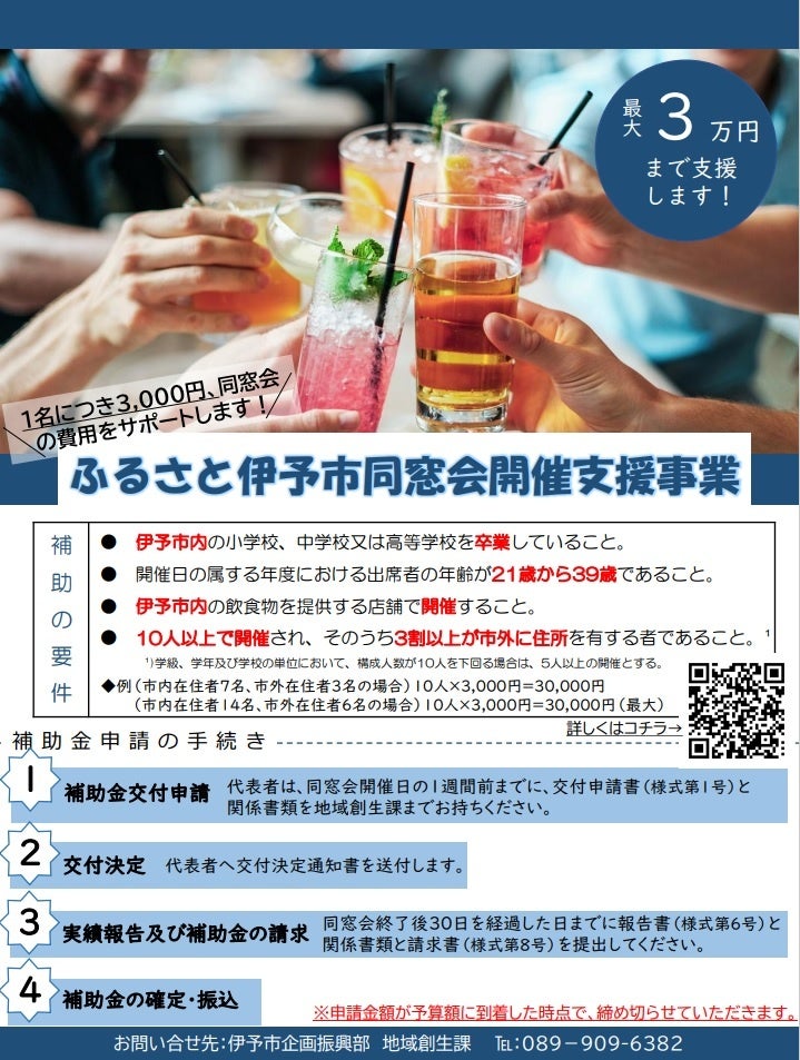 伊予市関係人口の創出と地域経済の活性化を目指し、同窓会の開催を支援します!