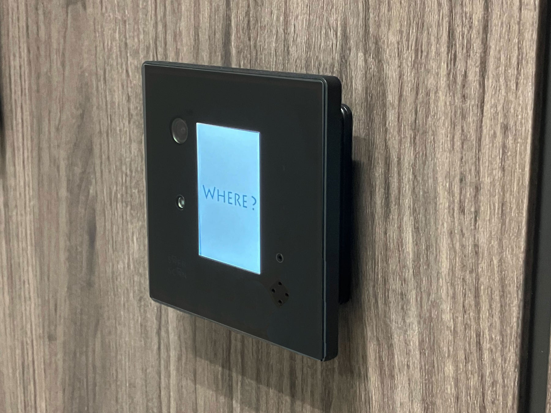 新オフィスには、当社オフィスソリューション「EXOffice」や、「会議室予約表示端末」を導入するとともに、WHERE占有空間内は、全席予約制のフリーアドレスを採用、各席に「ホテリングラベル」の掲示を行い、臨機応変かつ、社員間で相談しやすい職場環境づくりを推進していきます。
