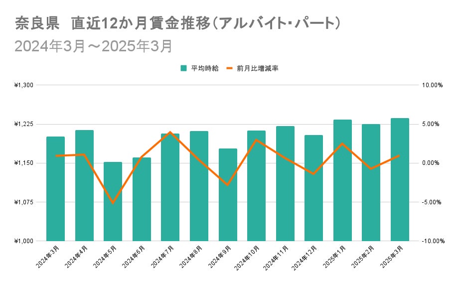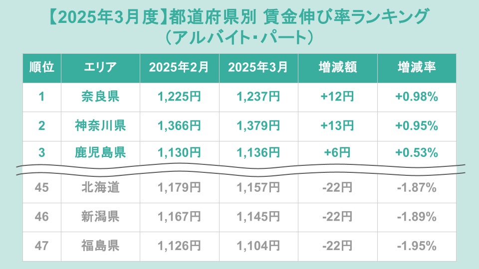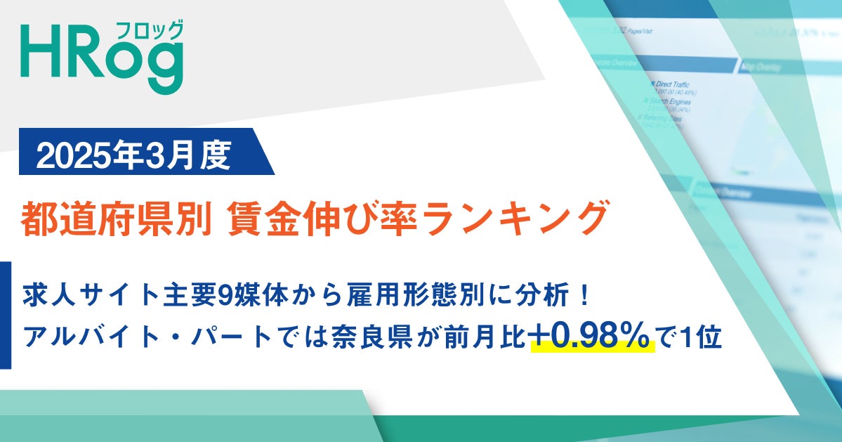 求人サイト主要9媒体から雇用形態別に分析!アルバイト・パートでは奈良県が前月比+0.98%で1位【2025年3月度 都道府県別 賃金伸び率ランキング】
