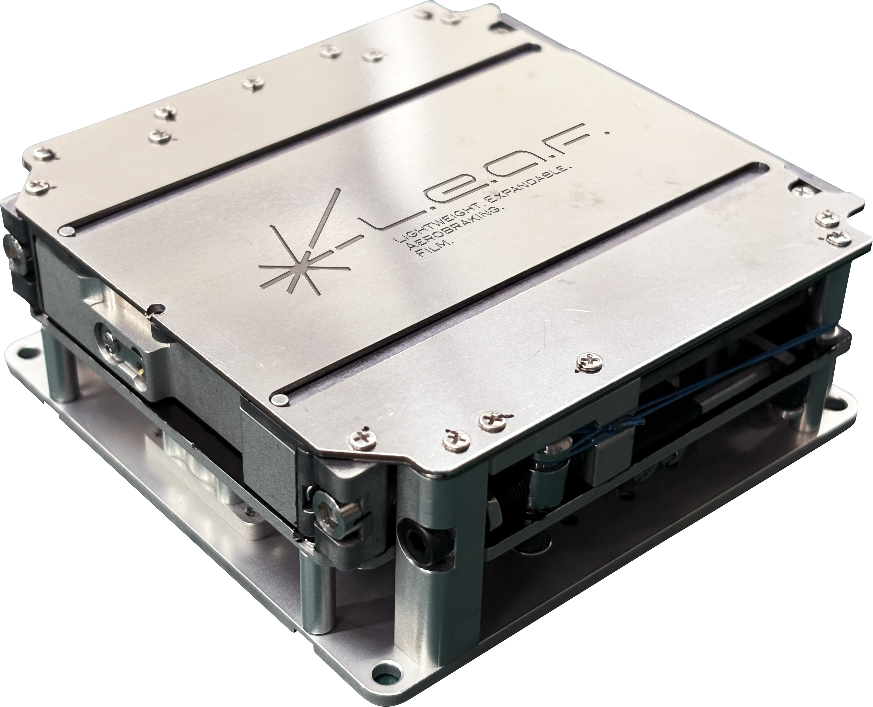 「LEAF」は、Lightweight Expandable Aerobraking Filmの略称であり、軽量かつ展開可能な膜構造により、大気抵抗を利用して衛星の軌道離脱を促進するコンポーネントです。