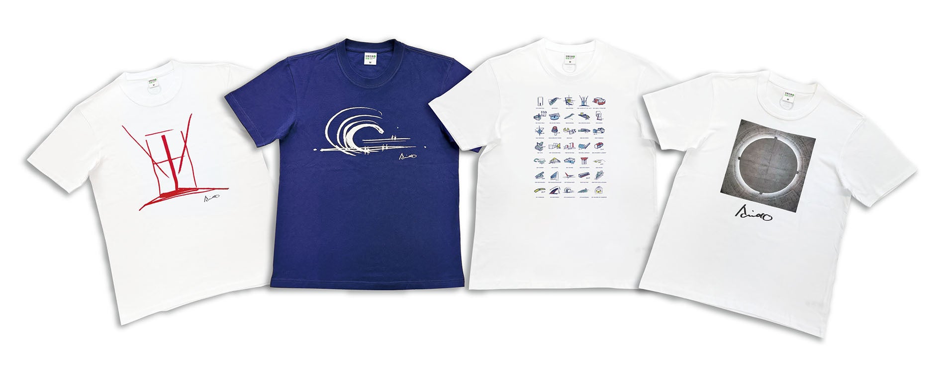 代表作「光の教会」「上海保利大劇場」のスケッチをフィーチャーしたデザイン2種と、代表作を安藤忠雄氏直筆の可愛らしいイラスト並べたデザイン、ユネスコ瞑想の庭の象徴的な光と影をモチーフにしたデザインの合計4種類からお選びいただけます。