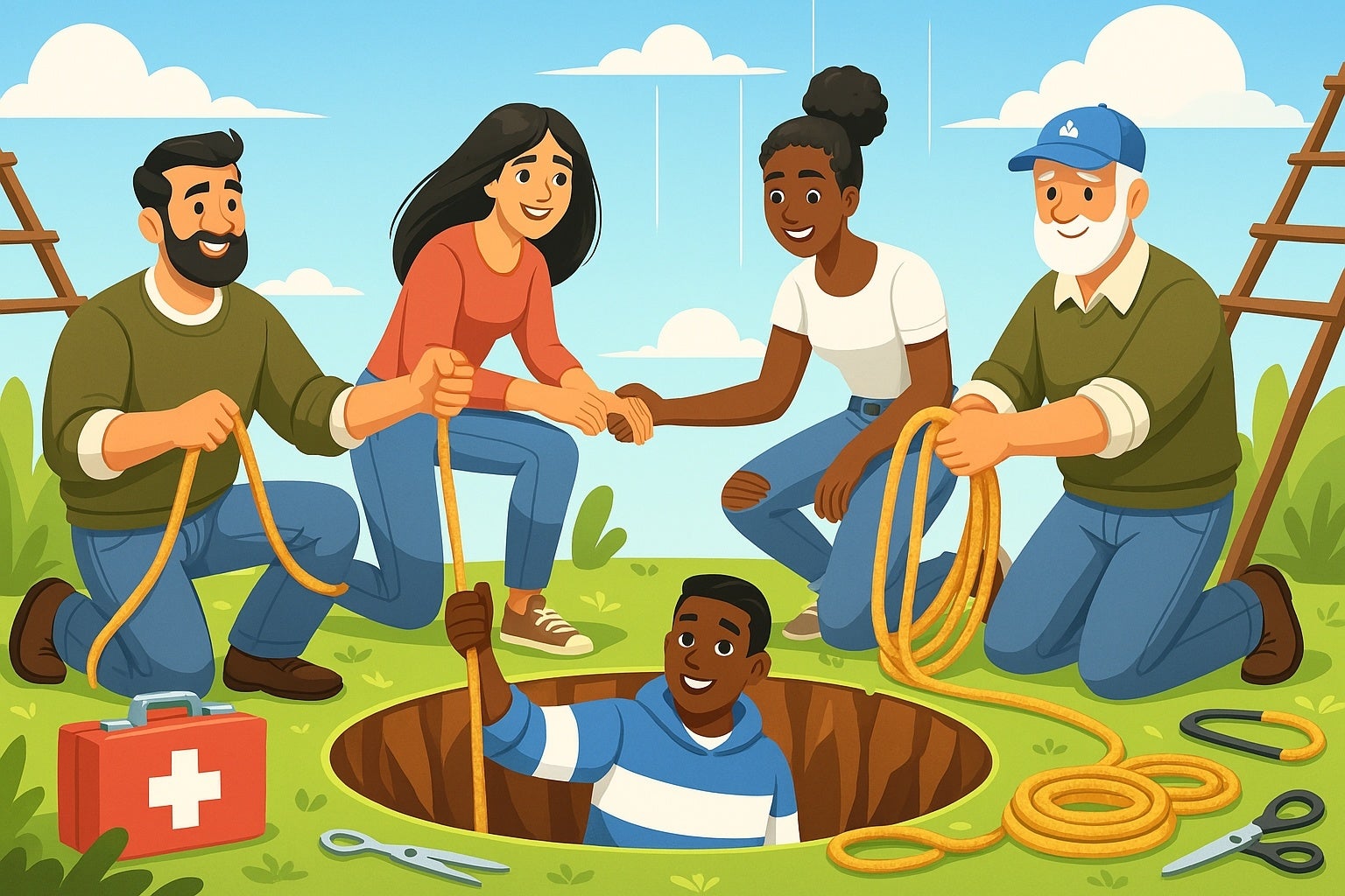 お電話の内容から、AIが最適な救出方法と必要な装備を判断し、最寄りのエスケープスペシャリストを派遣します。
