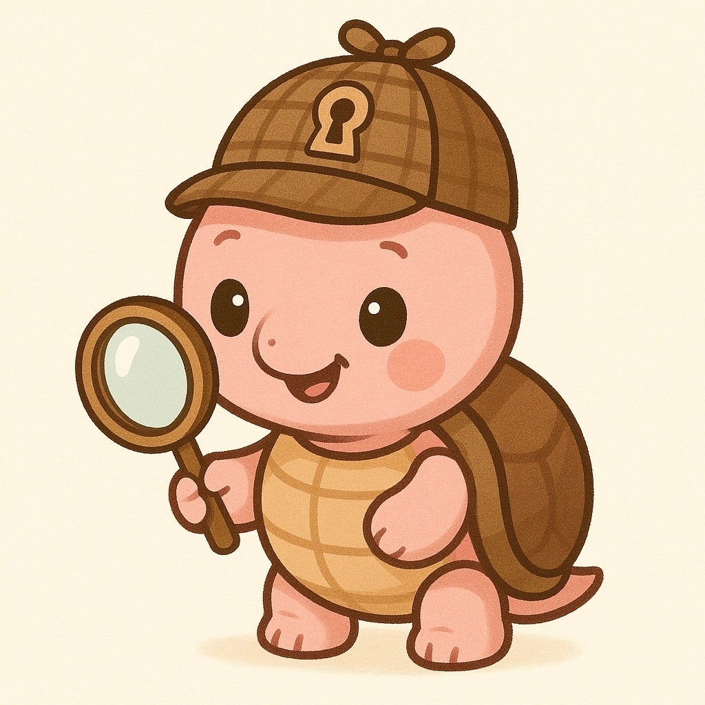 謎解き、パズル、冒険が大好きなかわいい亀のキャラクター。あなたの好奇心をくすぐる相棒になります!