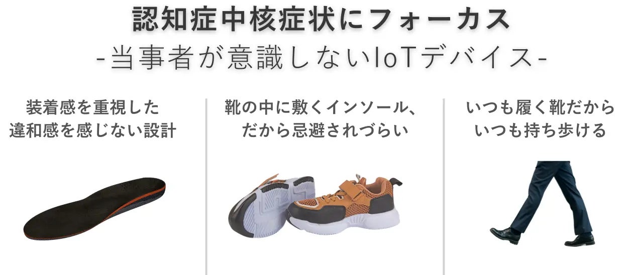 利用者は普段履いている靴のインソール(中敷き)を入れ替えるだけで本デバイスを使用することができ、移動開始時・帰宅時や移動時間に応じたアラートを受け取ることができます。