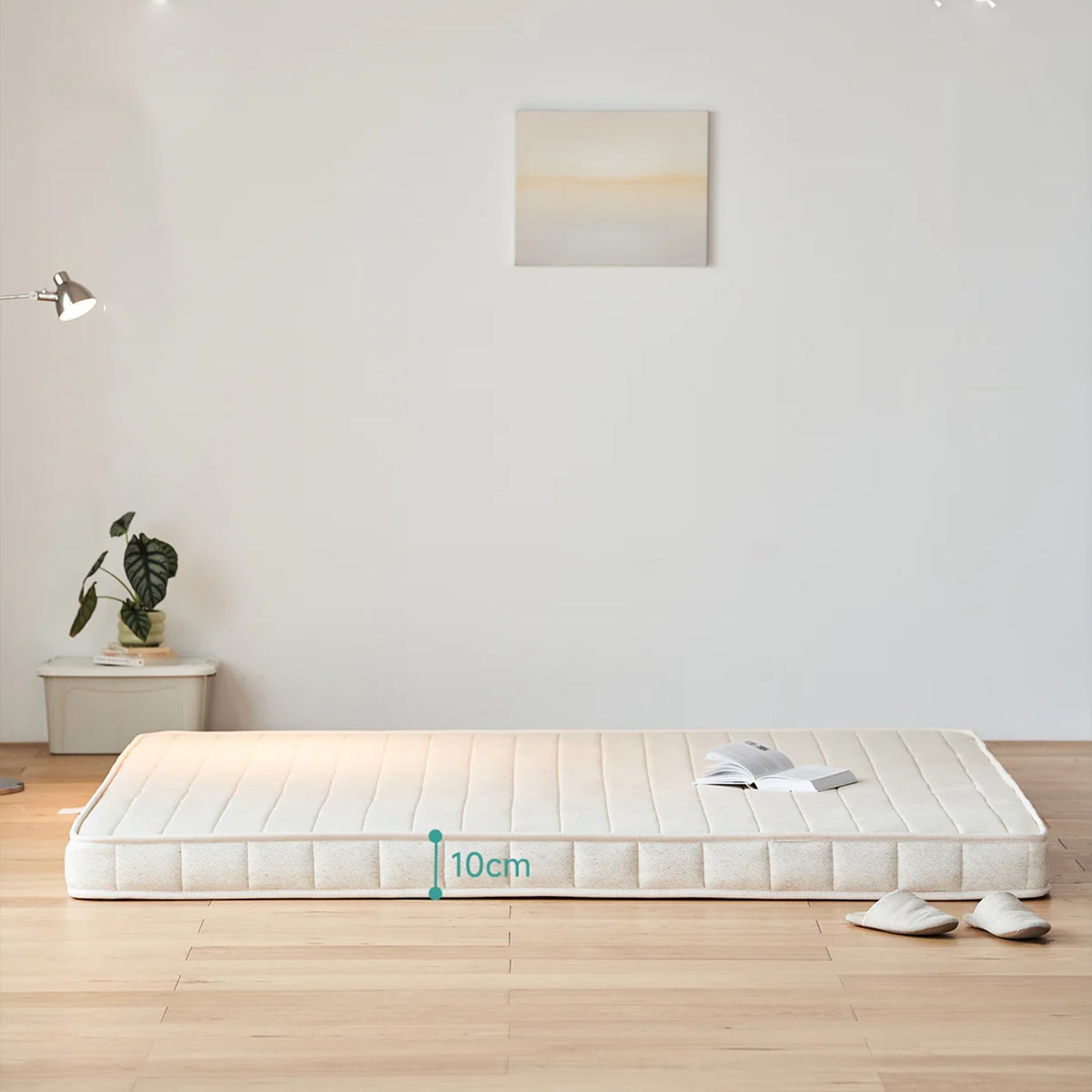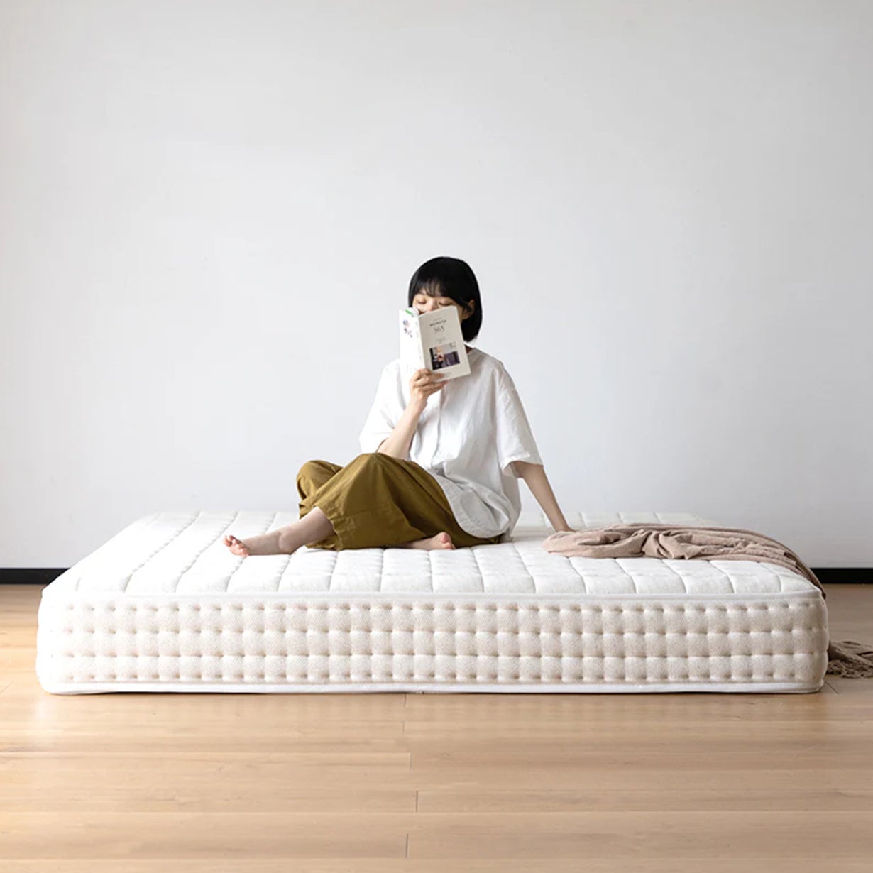 厚さ10cmと15cmの2種類展開で、様々なベッドフレームに対応するスリムなマットレス。1628個の支点で体を支え、体に負担をかけない適度な硬さで快適な睡眠を提供します。ホルムアルデヒドを含まないため、小さな赤ちゃんが寝ても安心です。多様なサイズを用意しているので、ほしいサイズがきっと見つかるはず!