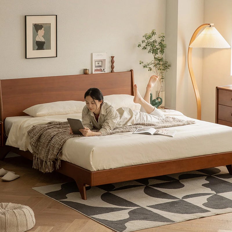 厳選された高級木ならではの暖かみと風合いを存分に味わえるベッド。スタイリッシュで洗練されたシルエットは、落ち着いた居心地の良い寝室にぴったり。厚みのある木材を使用することで他にはない圧倒的な頑丈さを持ち、長くお使いいただけます。