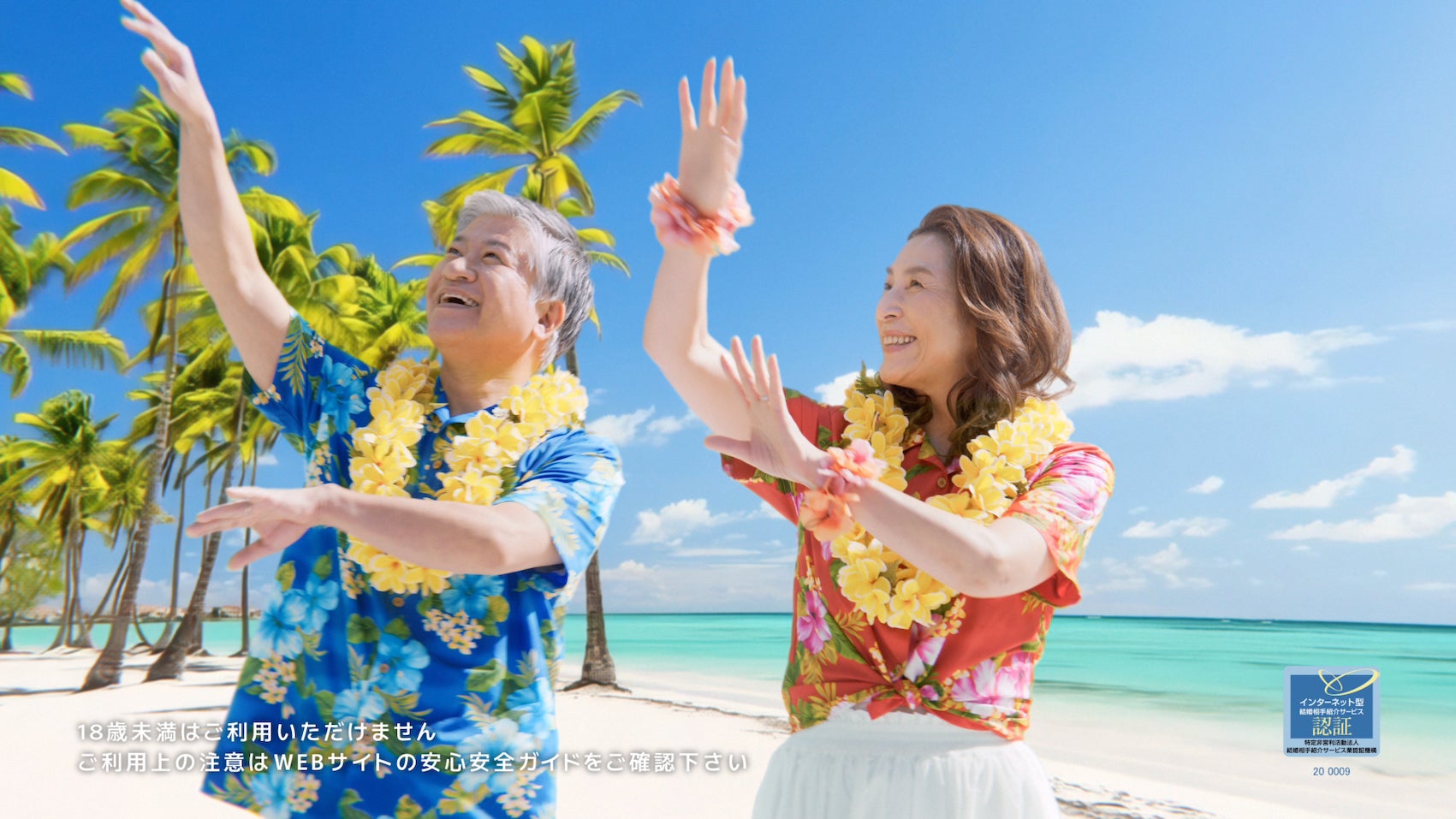 ラストは“シニアもミドルも婚活しよう”というメッセージとともに、ハワイで二人が笑顔で踊るシーンで締めくくられます。