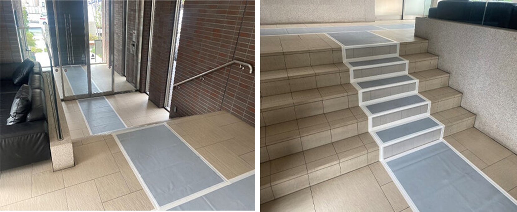そこで、リファインバースグループが構築したビジネスモデルのもと、クリーンテックス・ジャパンにて養生シートの製品開発を開始。大京穴吹不動産の現場にてテスト導入を行い、実用性を検証。50回程度の再利用が可能になるなどの耐久性の向上と、雨の日も滑りにくいなどの安全面も強化されたことから、大京穴吹不動産での採用が決定しました。