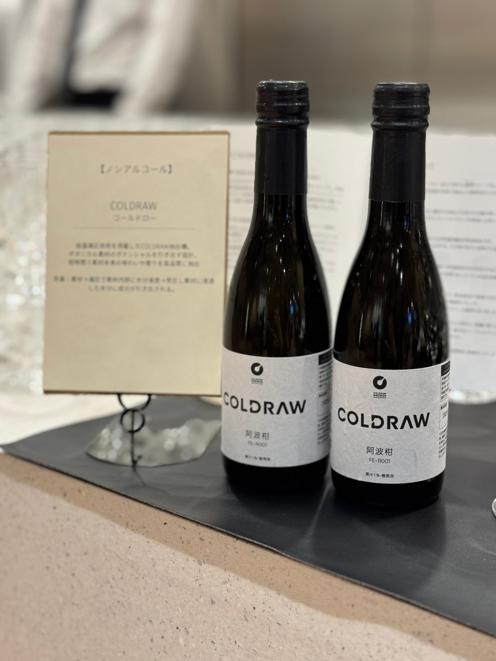 10月10日(金)11日(土)には、客船・飛鳥Ⅱで日本中の食の探究者たちが船上に集い交わる、食の未来会議であるシグネチャーイベント「EARTH MART FORUM」が開催され、ランチではCOLDRAWのシグネチャーフレーバーである「阿波柑」が振舞われました。「阿波柑」は、徳島県の希少な乳酸発酵茶”阿波晩茶”と、地元で”幻の果実”と呼ばれる柚香(ゆこう)を合わせた微発泡のスパークリング飲料です。柑橘の爽やかな酸味と苦み、ハーブとスパイスの繊細な香りが特徴です。