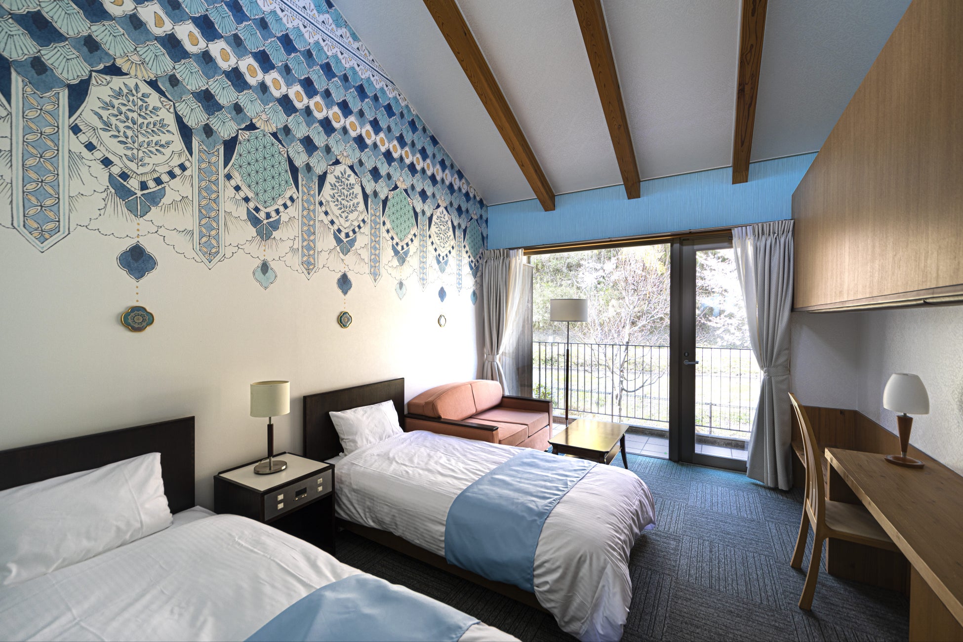 最大の特長は、能美市ゆかりの九谷焼作家8名が、それぞれの世界観でプロデュースを手がけた全8室の客室です。作家の感性を反映したインテリアやアート作品が室内を彩り、部屋ごとに異なる世界観を楽しめる「九谷ステイ」が、何度でも訪れたくなる特別な体験を提供します。