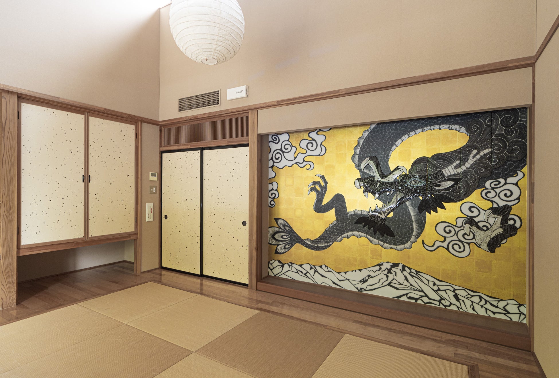 スパエリアには、デザイン性の高い浴室やリラクゼーション設備を完備。浴室の壁には九谷焼の装飾が施されており、美しいアートを眺めながらの入浴が可能です。