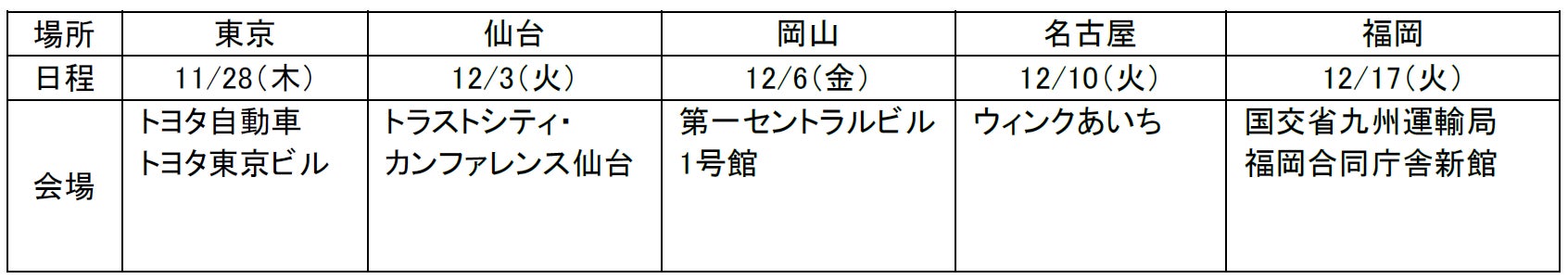 ~東京(11/28)、仙台(12/3)、岡山(12/6)、名古屋(12/10)、福岡(12/17)の全国5か所を予定~