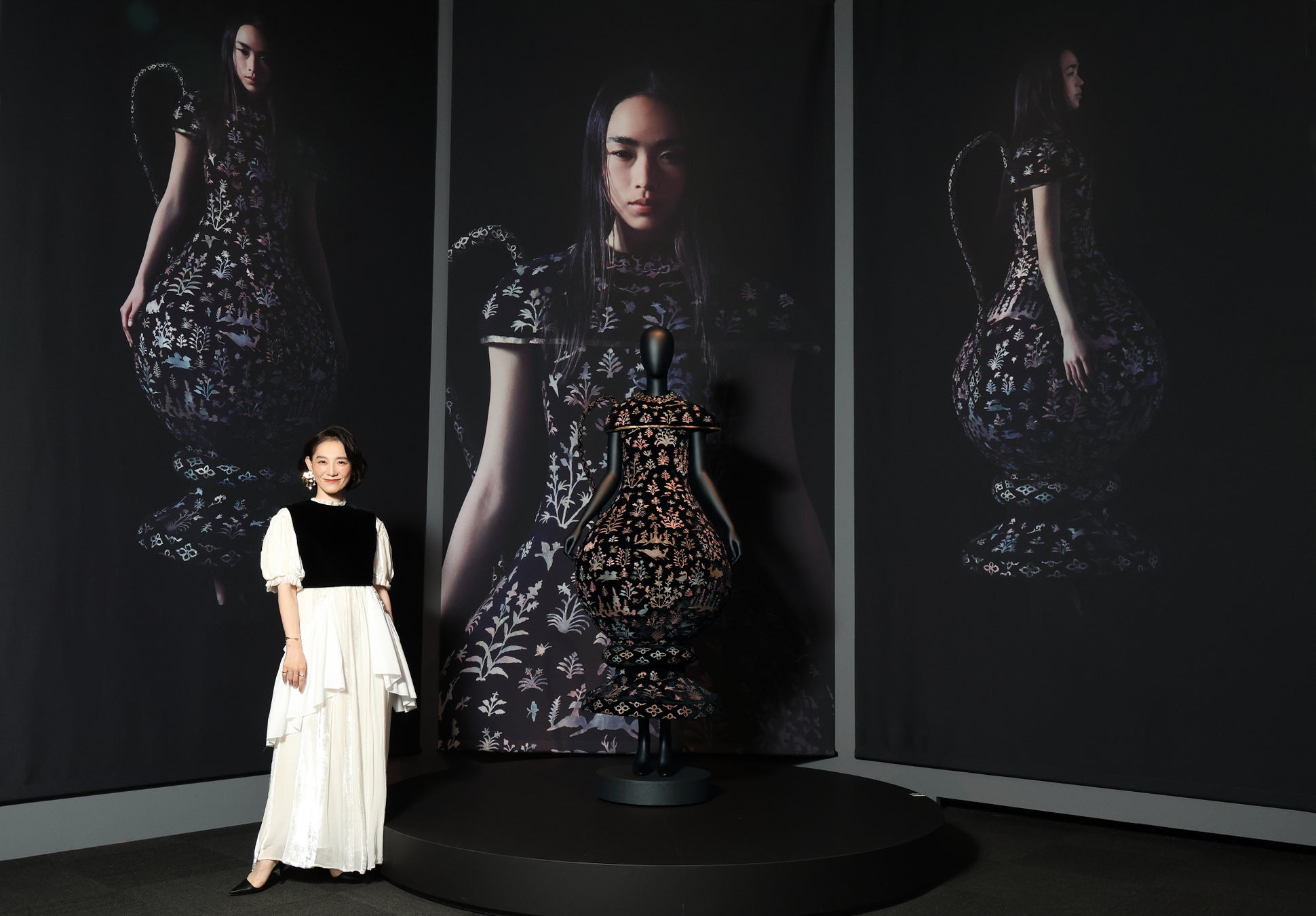 篠原さんは、正倉院宝物の一つで、鳥の頭を象った蓋をもつペルシア風の水瓶「漆胡瓶(しっこへい)」をモチーフにしたドレスを本展のために製作しました。1年にわたる構想の始まりから製作段階での発見、苦労やこだわりとともに、「正倉院宝物をアートとして体感できる、新たなチャレンジとなる展覧会。この展覧会を通して正倉院宝物の魅力、手仕事の価値、そしてこれまでそれを受け継いできた先人たちの情熱を感じ取っていただけたら、こんなに嬉しいことはありません。ぜひ宝物と目を合わせに来ていただけたらと思います。正倉院 THE SHOWで、会いましょう。」と語りました。