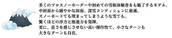 海外では“スノーサーフィン”や“パウダーサーフィン”とも呼ばれますが、日本の雪板にはまた違った趣があります。