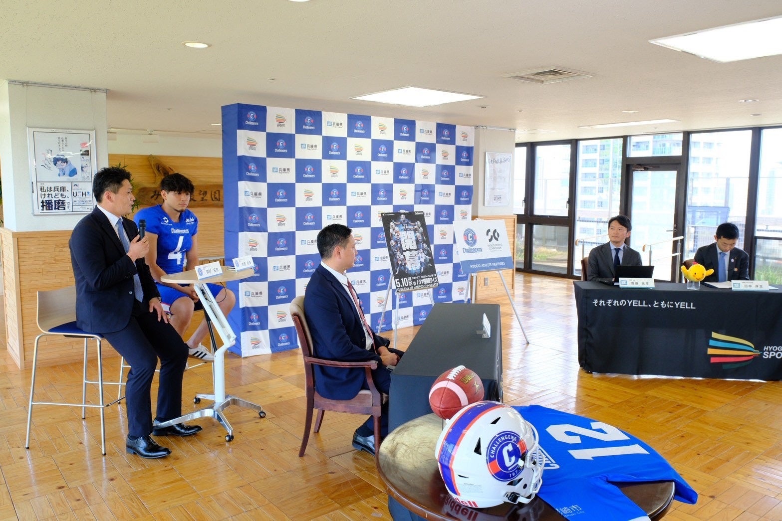 兵庫県と包括連携協定を結ぶアメフトチームSEKISUIチャレンジャーズのGMと選手が兵庫県知事齋藤元彦氏に表敬訪問を実施。2026年度から新たなリーグとして発足する「Xリーグプレミア」の初代王者を宣言
