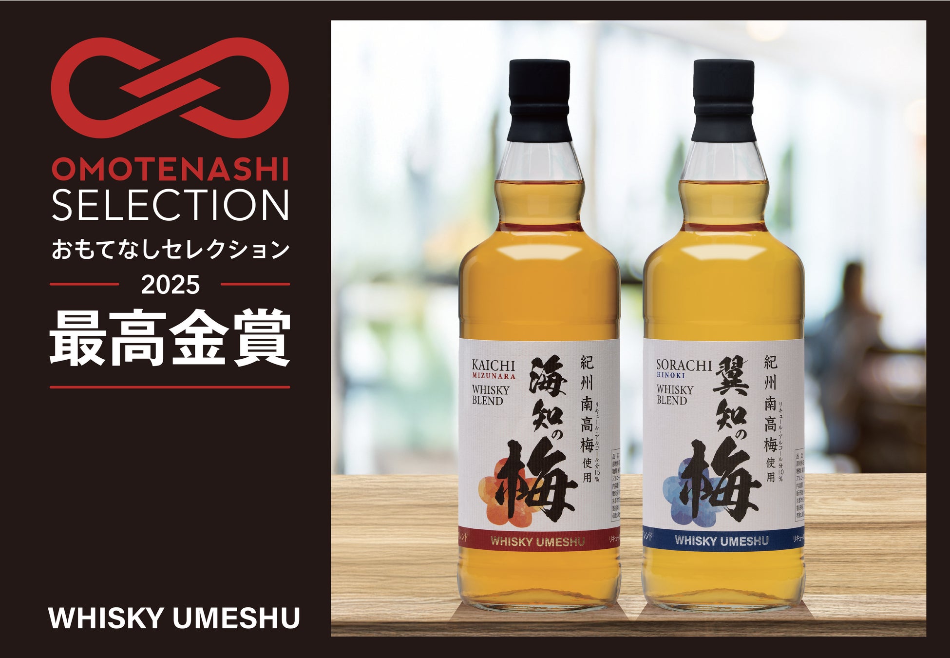 この度、ミズナラ樽海知とヒノキ樽翼知をブレンドしたウイスキーブレンド梅酒が「OMOTENASHI Selection(おもてなしセレクション)2025」において最高金賞を受賞いたしました。