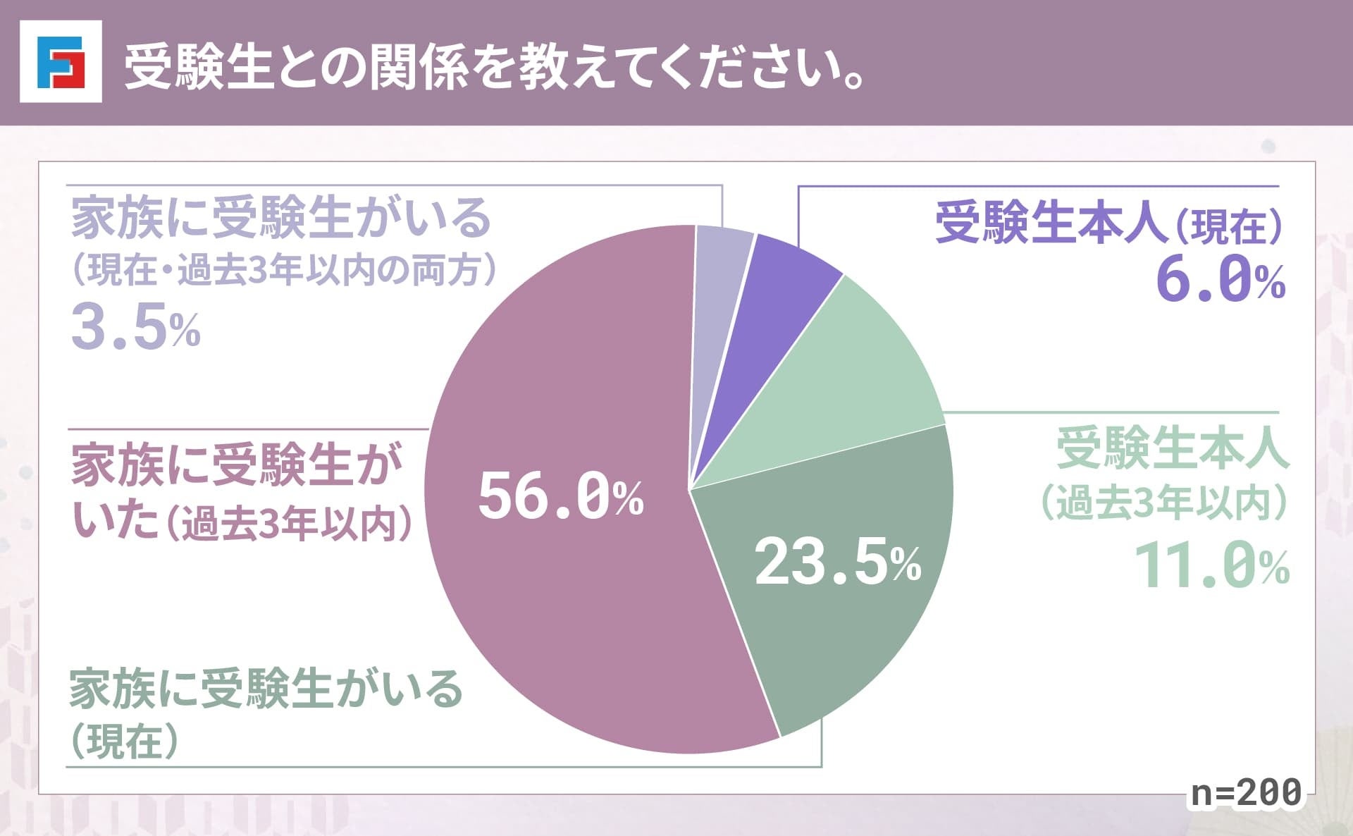 今回のアンケートの回答者は、過去3年以内に家族に受験生がいた方が中心です。