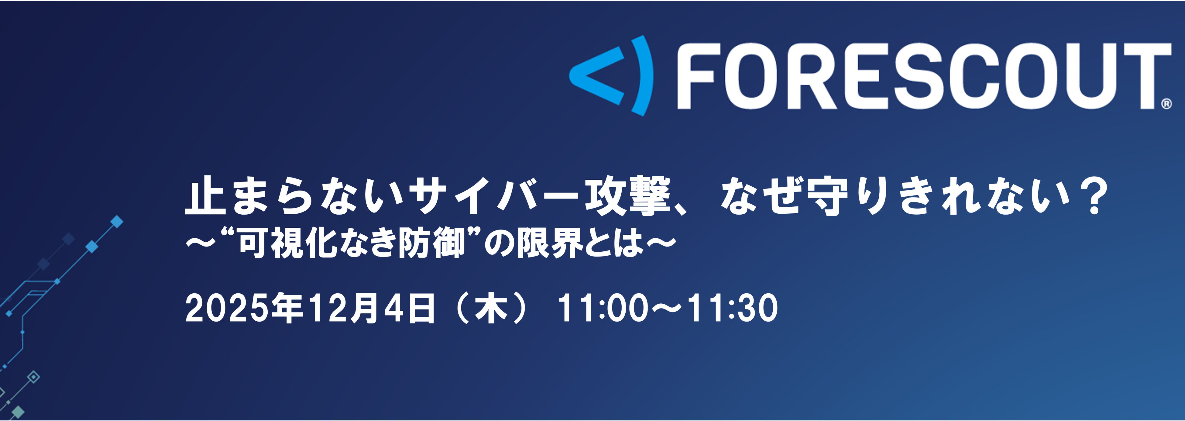 本ウェビナーでは、Forescoutが提供する全デバイス可視化と制御のアプローチについて分かりやすくご紹介し、「なぜまずForescoutなのか」を解説します。