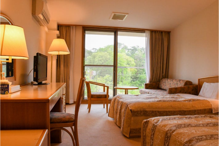 特に、スタンダードツインタイプの客室は全室中庭に面し、明るく開放的な雰囲気の客室です。ソファスペースでは窓から四季折々の自然を堪能でき、ゆったりとした時の流れを堪能できます。