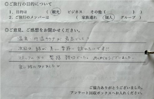 1年に1度来ようと思っていたのですが、前回の宿泊からわずか1か月後に再び来てしまいました。