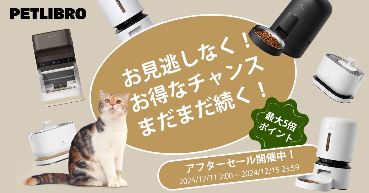 盛大なスーパーSALEの終了を受け、PETLIBRO感謝の気持ちを込めて特典を用意しました!人気商品に対し最大3000円のクーポンと5倍ポイント還元を実施し、質の高いペット商品をお得に楽しむチャンス!
