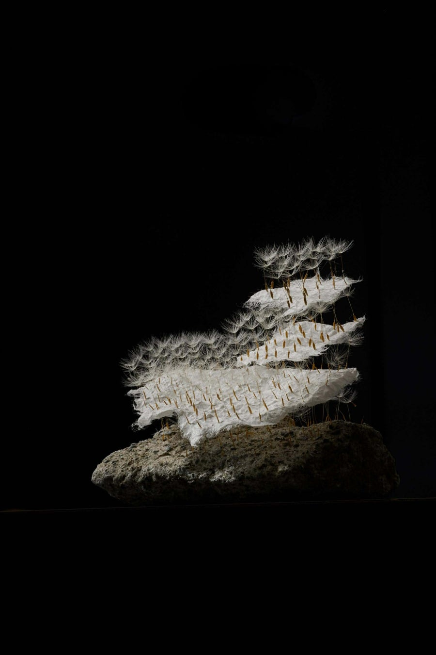 たんぽぽの綿毛を使った建築作品「息を建てる/都市を植える」で2018年東京ミッドタウンアートアワードのグランプリを受賞。