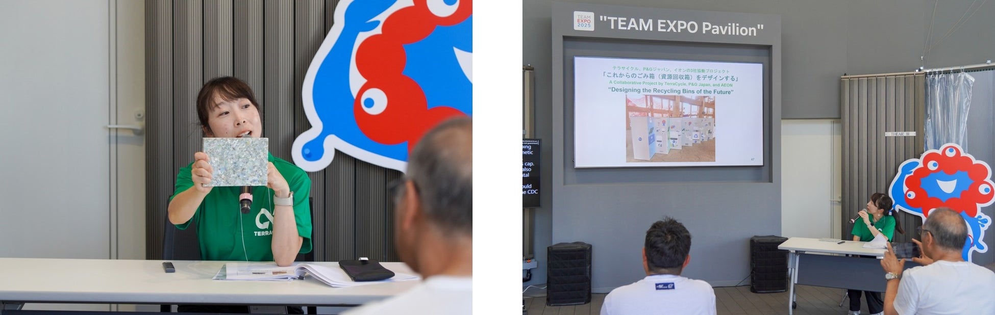 次に登壇したのは、テラサイクルジャパン合同会社ジェネラルマネージャーの浪花優子氏。P&Gジャパン、イオンとの3社協働プロジェクト「これからのごみ箱(資源回収箱)をデザインする」への思いと活動について語りました。テラサイクルはアメリカに本社を置き、約20か国で「捨てるという概念を捨てよう」をミッションに企業や消費者と連携し、使い捨てプラスチックの削減に取り組んでいます。