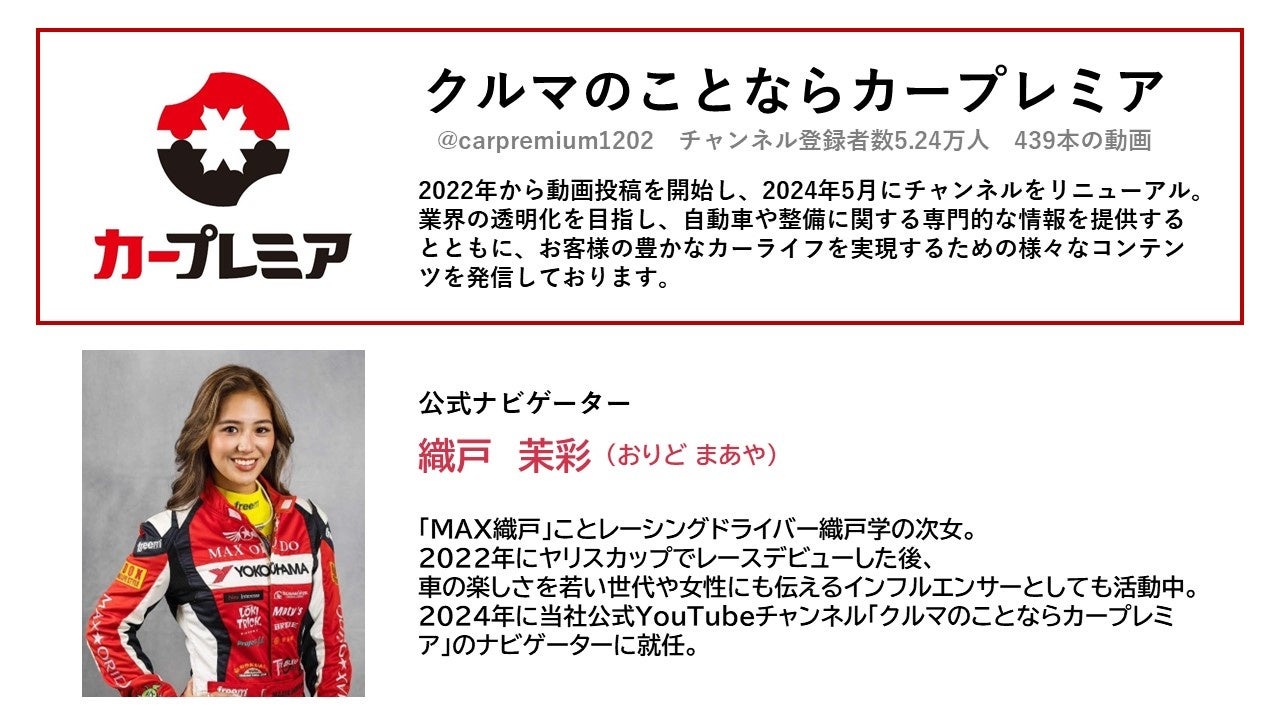 公式YouTubeチャンネル:https://www.youtube.com/@carpremium1202